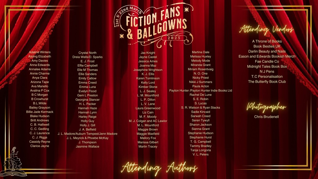 First up is Fiction, Fans and Ballgowns in Newark, March 21st – 22nd.